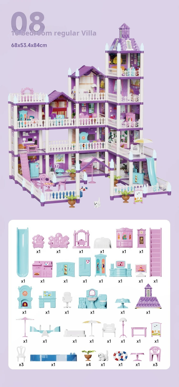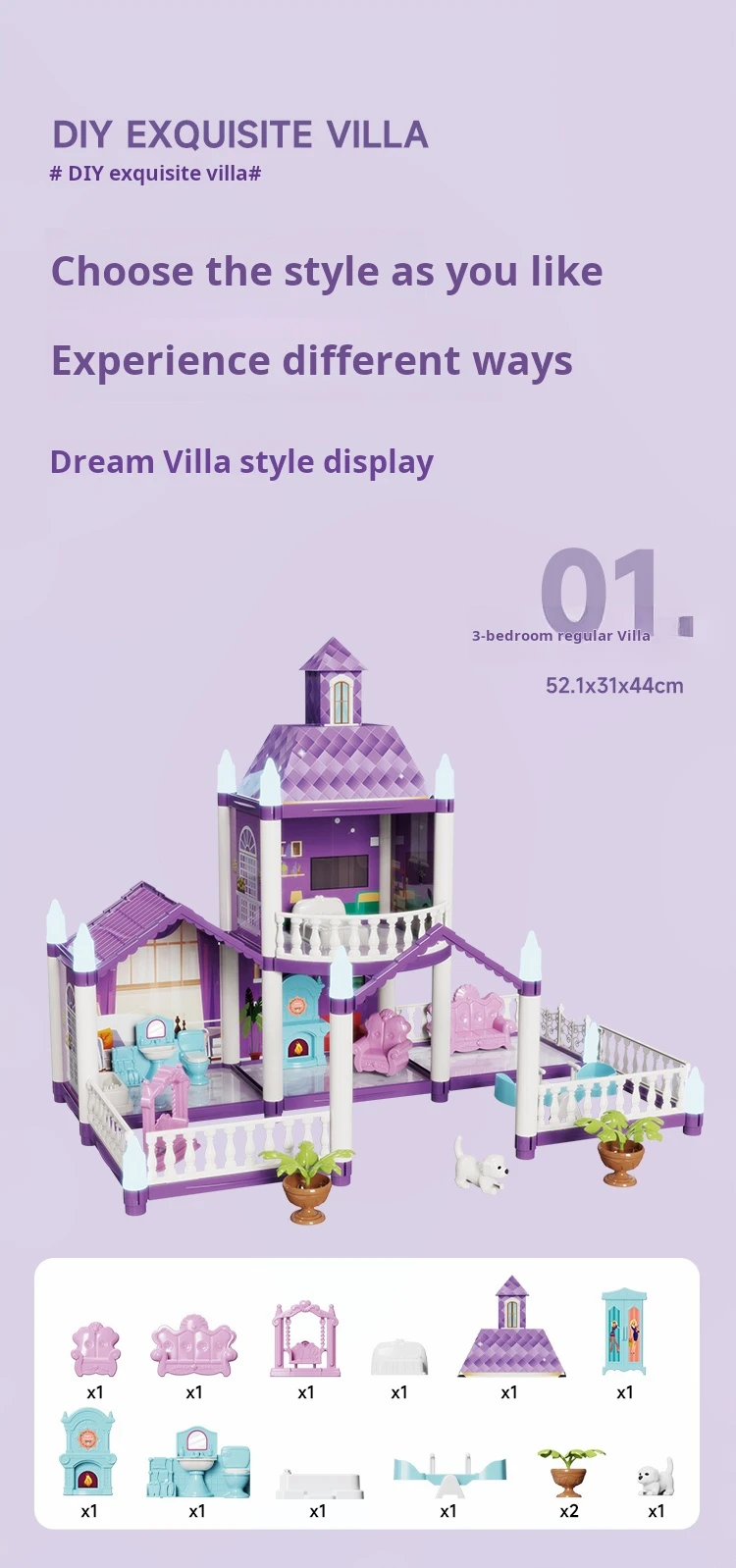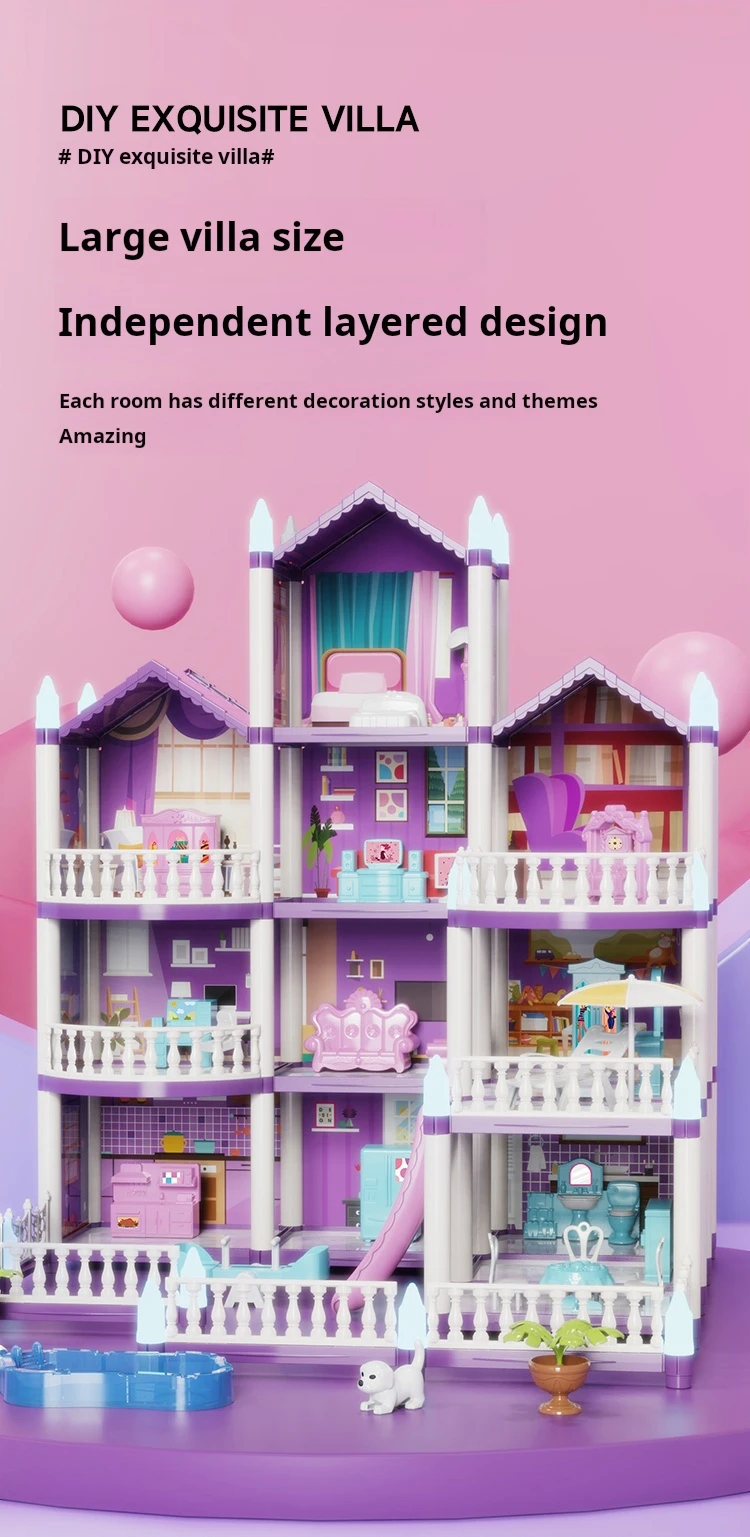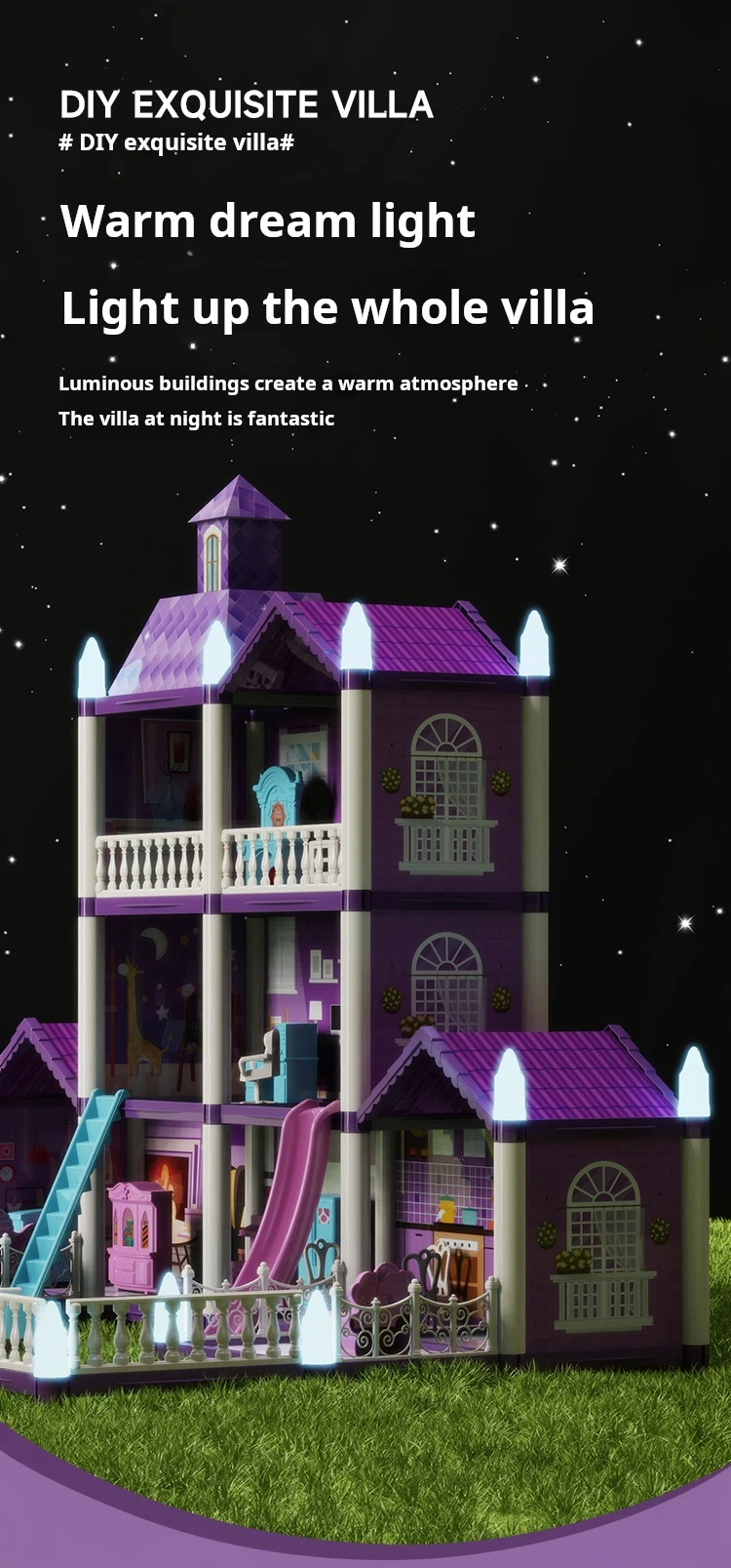 3D DIY Fantasy Princess Castle Villa Assembly Doll House Set Toys, Girls Home Toys & 3D Kids Toys