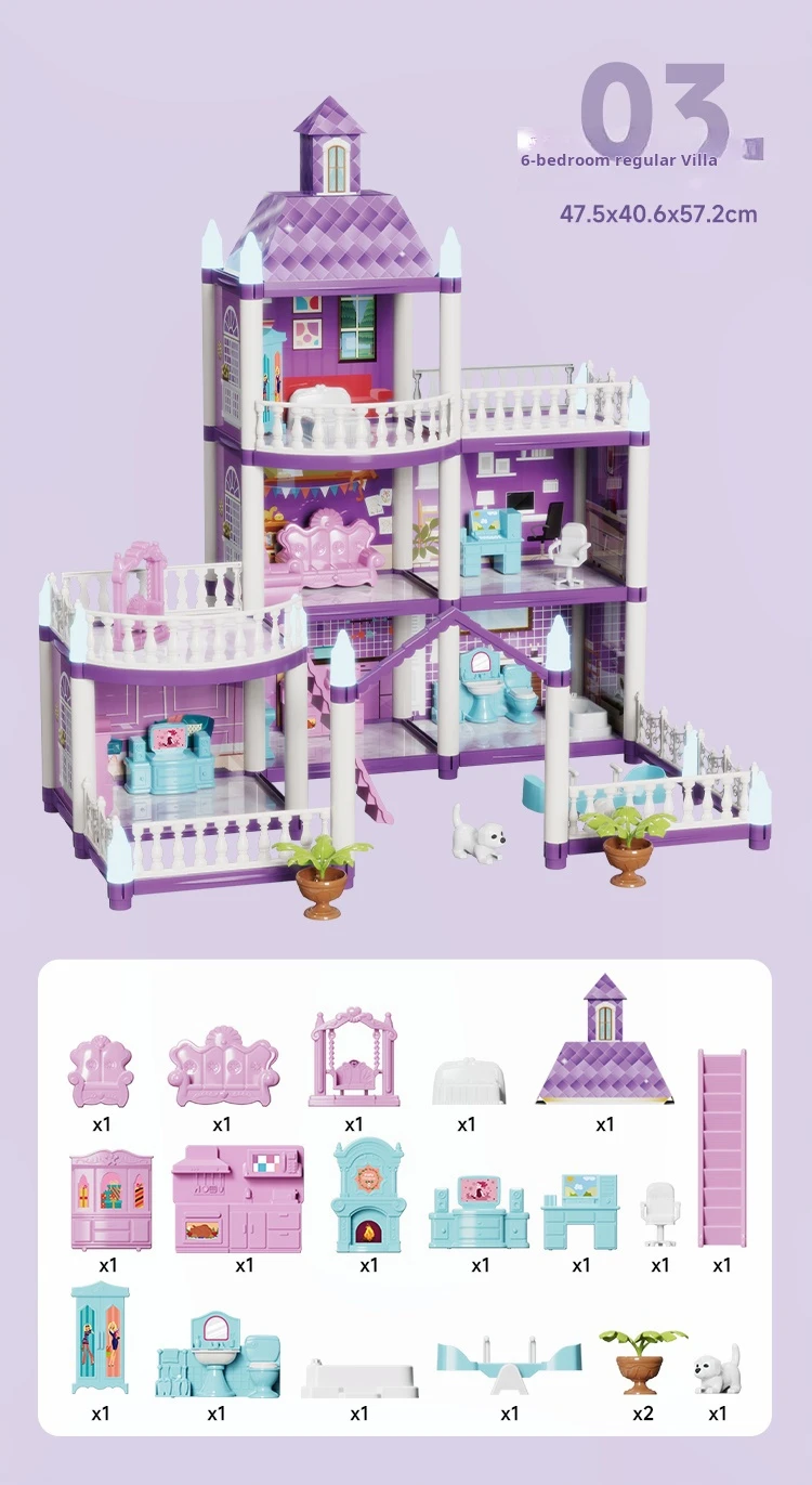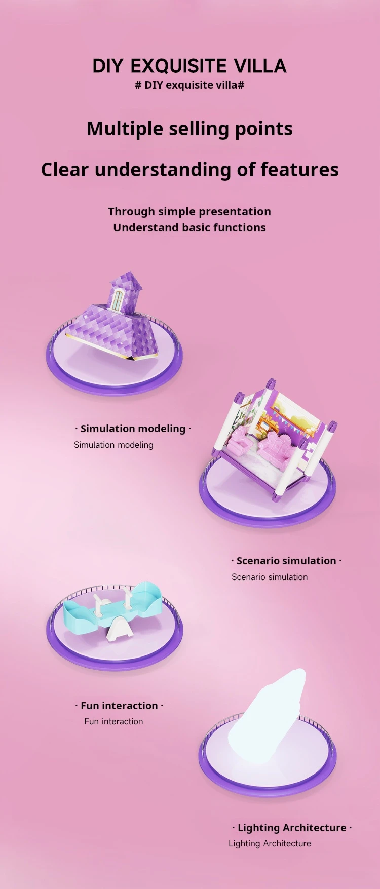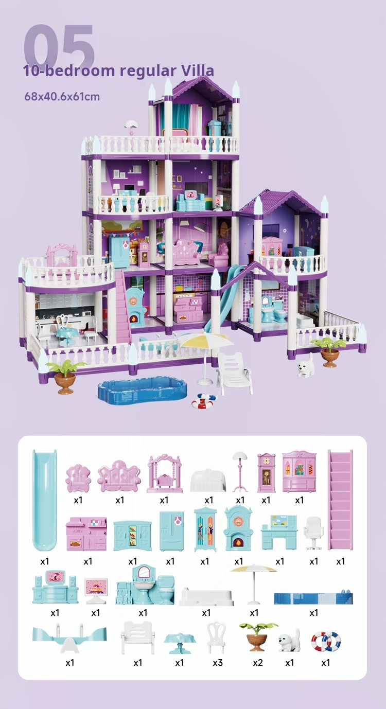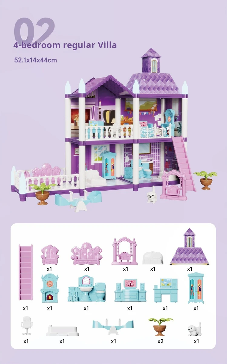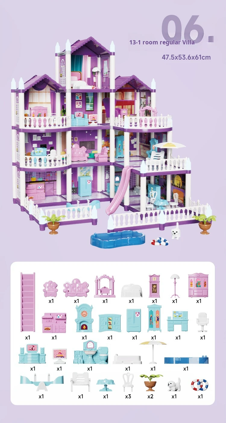 3D DIY Fantasy Princess Castle Villa Assembly Doll House Set Toys, Girls Home Toys & 3D Kids Toys