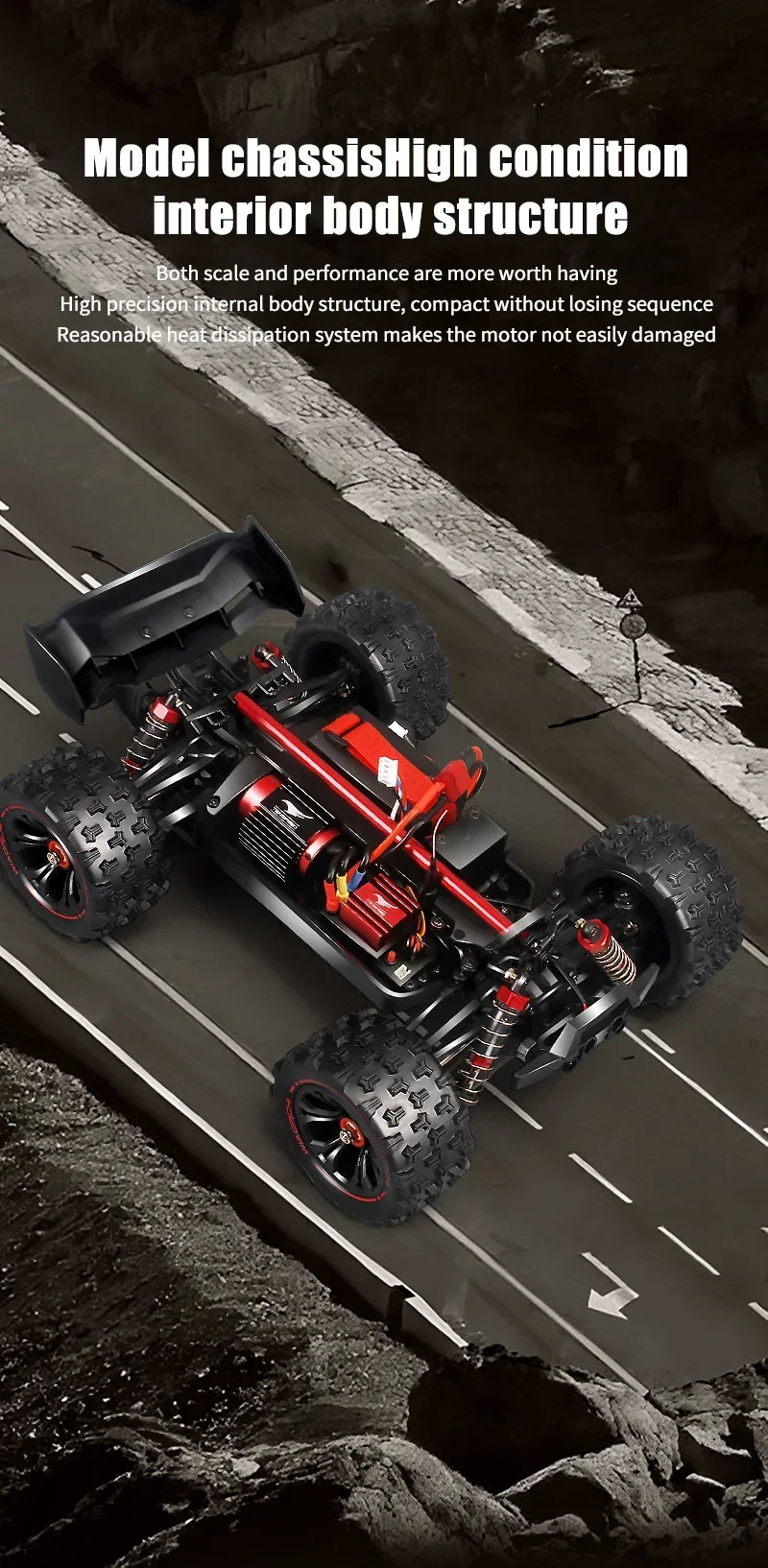 4-Wheel Drive (4WD) System Engineered for all-terrain dominance. The 4WD system ensures maximum traction on loose surfaces, allowing for sharp cornering, climbing, and high-speed drifting.