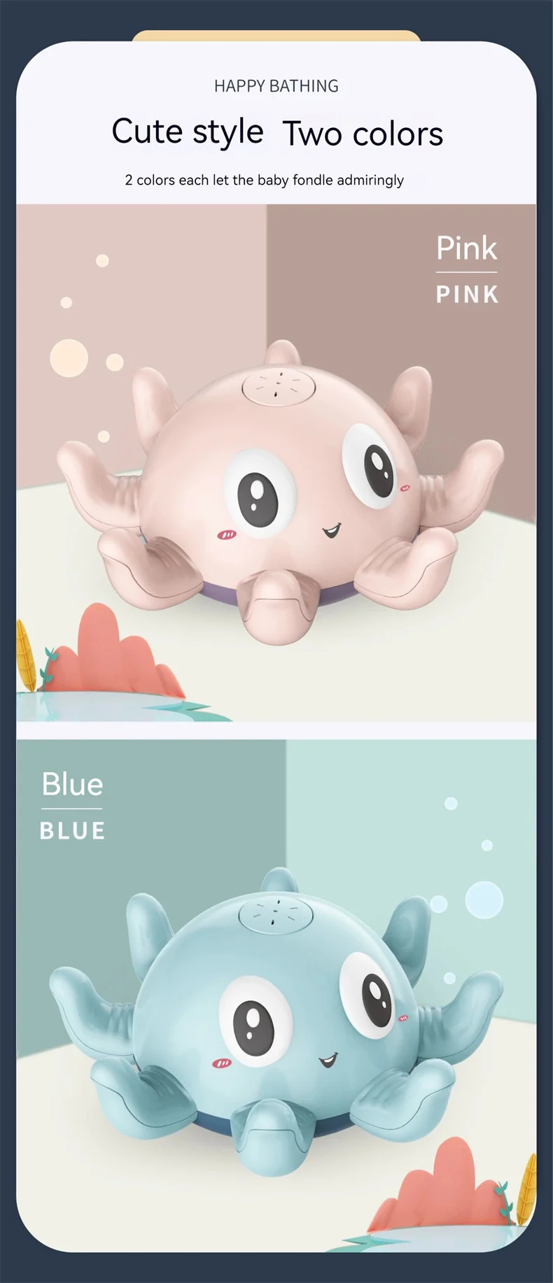 Available in adorable Octopus and Whale designs, these toys are made from durable, high-quality ABS plastic. They are perfect for the bathtub, swimming pool, or even beach play. The battery compartment is designed to be water-tight (ensure screws are tightened securely), providing safe, endless entertainment for your little one.