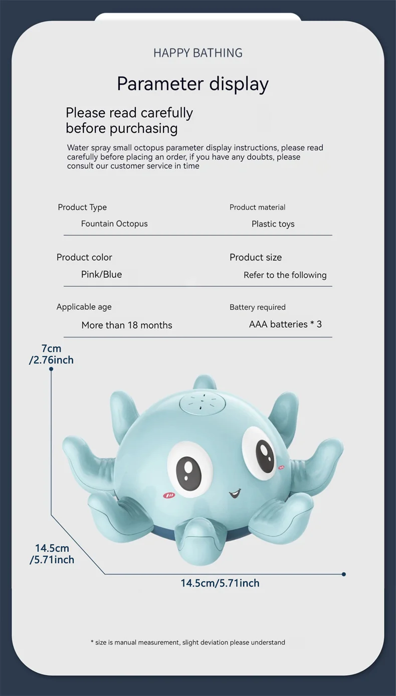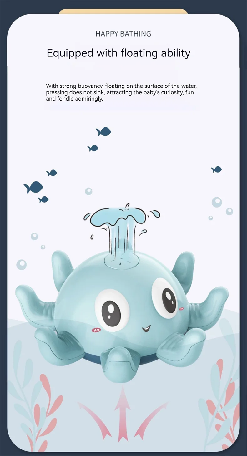 Turn bath time into a magical fountain show with this Automatic Induction Octopus & Whale Bath Toy. Designed to captivate curious minds, this clever floating toy automatically senses water to create an exciting splash and light display, making hygiene fun for babies and toddlers.