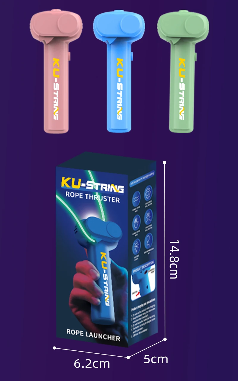 Experience the laws of physics in a whole new light with this incredible string rope launcher. With the push of a button, the high-speed motor launches a loop of string that floats effortlessly in mid-air. In the dark, the string glows brightly, creating the illusion of a solid neon beam that you can control with your hand
