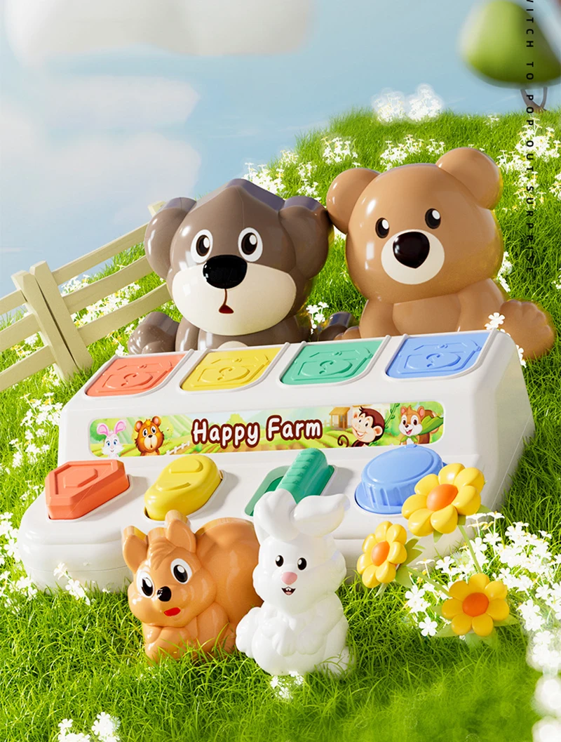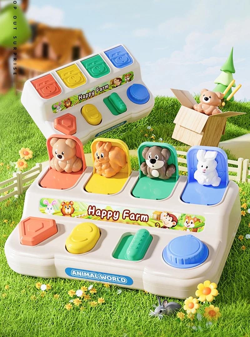 Features: 4 Pop-Up Characters, 4 Distinct Button Types