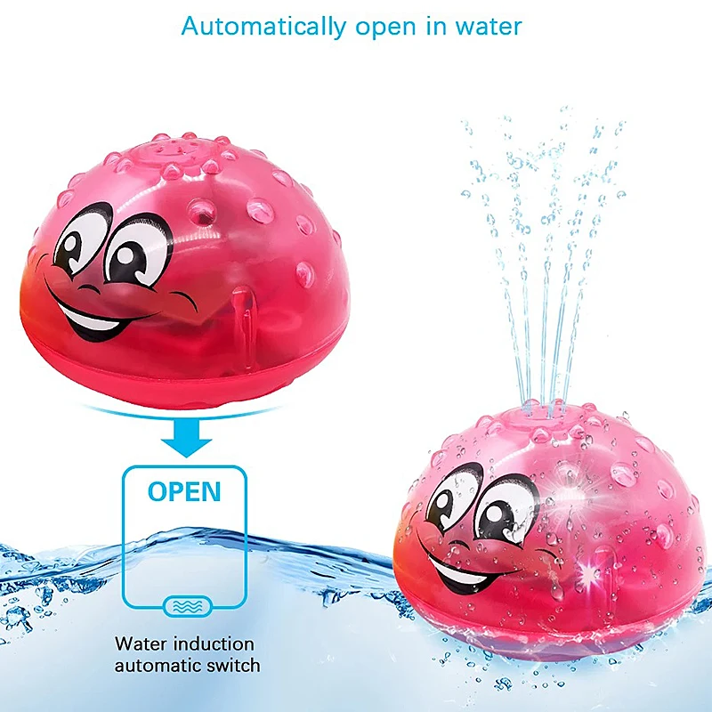 Unlike static bath toys, this ball features a 360-degree rotating mechanism. Once placed in the water, it spins while shooting a gentle fountain of water into the air. Accompanying the water show are bright, colourful LED lights that flash and glow, illuminating the spray and the bubbles for a fun visual effect.