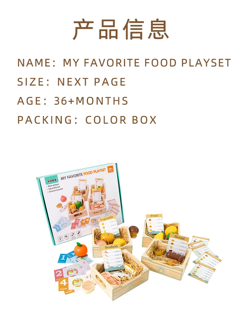 Includes: Fruits, Vegetables, Meat, Fish, Bakery Items, Wooden Knife, Tray
